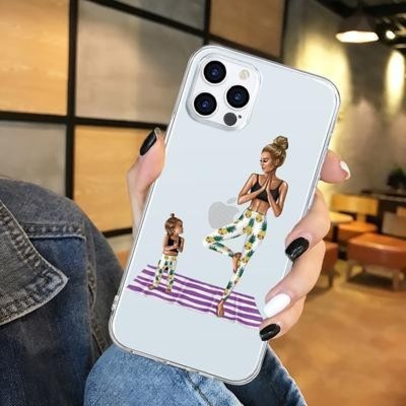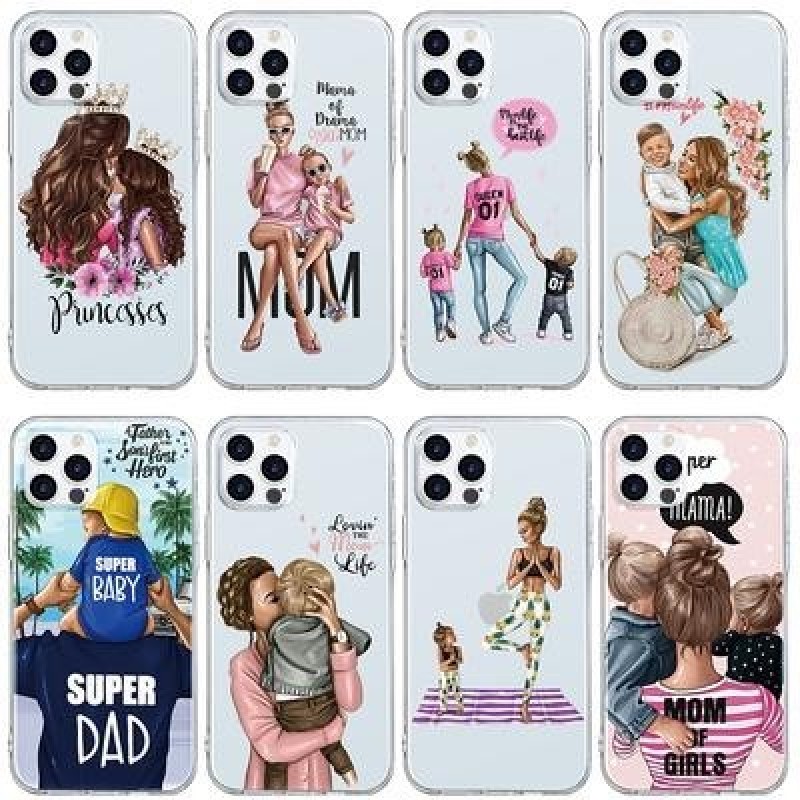 Черный Коричневый Ребенок Мама Девочка Волосы Мягкий TPU Чехол для iPhone 13 12 11 XS Pro Max XR X 7
